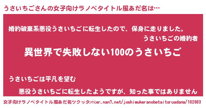 | ヒーロー風カッコイイあだ名 | 『ネオウサイチゴ』『仮面ウサダー』 |