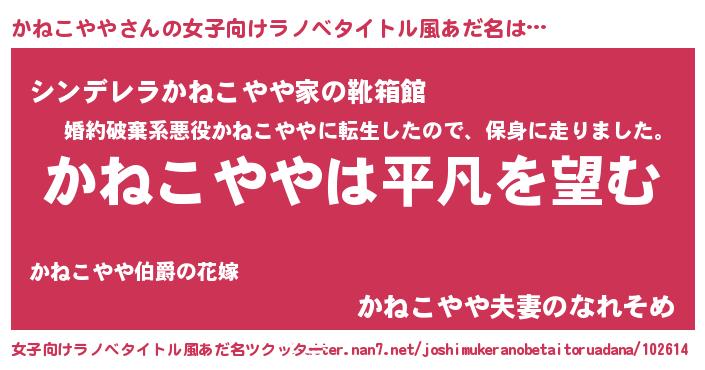 | 男性向けラノベタイトル風あだ名 | 『ダンジョンにかねこややを求めるのは間違っているだろうか』 |