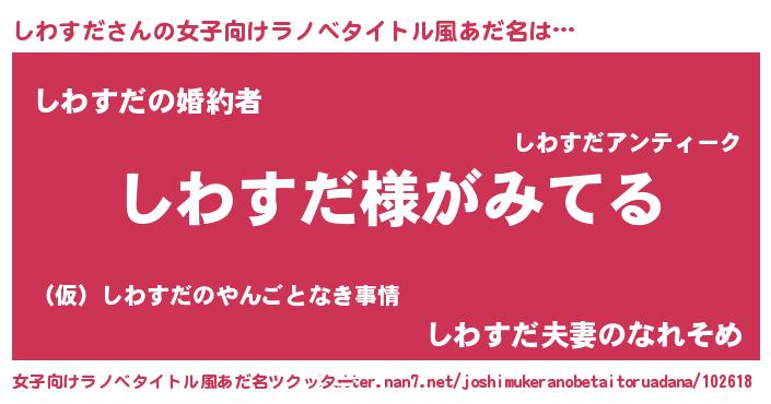 | 男性向けラノベタイトル風あだ名 | 『しわすだの嫁は女の子じゃないと思った?』 |