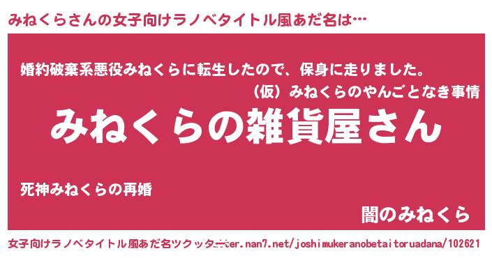 | 男性向けラノベタイトル風あだ名 | 『やはりみねくらの青春ラブコメはまちがっている 』 |