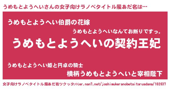 | 胡散臭い通販商品みたいなあだ名 | 『来世でも幸せになれる水素水…その名も「うめもとようへい」』 |