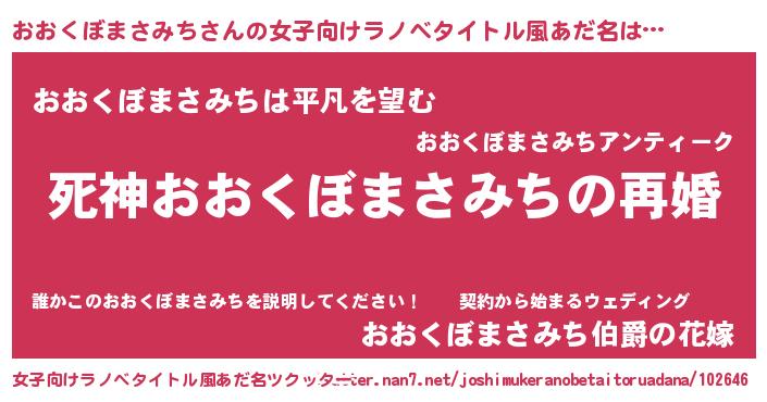 | 男性向けラノベタイトル風あだ名 | 『ノーゲーム・ノーオオクボマサミチ』 |