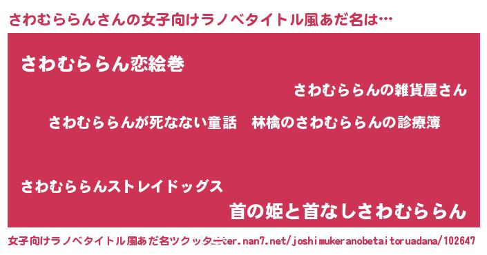 | 意味不明あだ名 | 『住所不定無職さわむららん(95歳)』 |