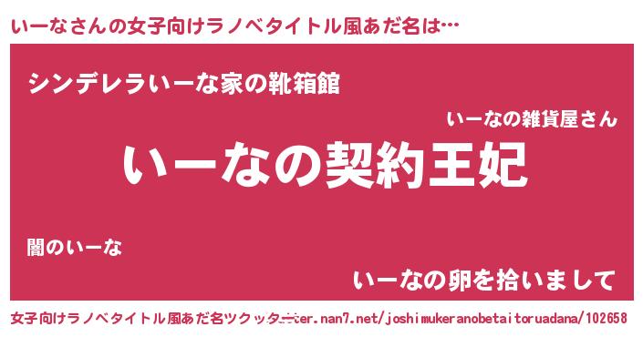 | 男性向けラノベタイトル風あだ名 | 『誰もが恐れるあのいーなが、ぼくの専属メイドになるようです。』 |