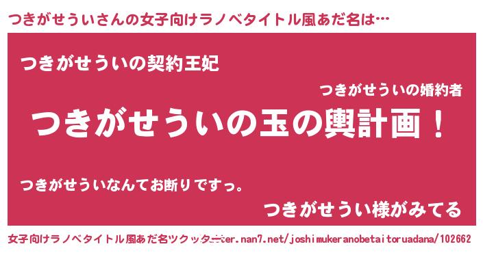 | 男性向けラノベタイトル風あだ名 | 『つきがせうい~年齢イコール彼女いない歴の魔法使い~』 |