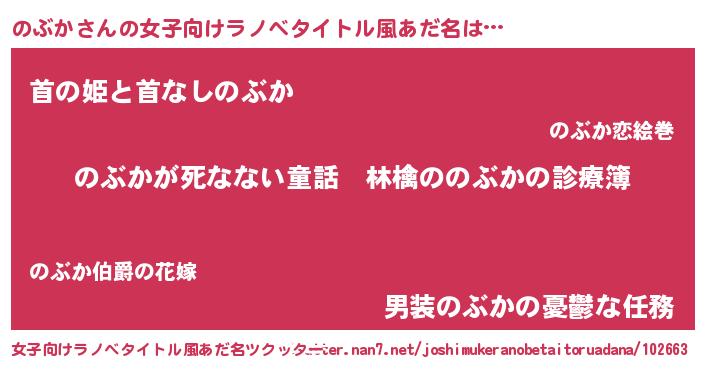 | 意味不明あだ名 | 『住所不定無職のぶか(59歳)』『自称のぶか』 |