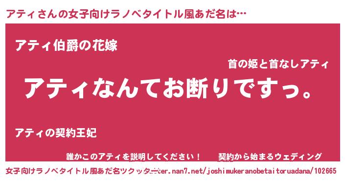 | 男性向けラノベタイトル風あだ名 | 『魔法科高校のアティ』 |