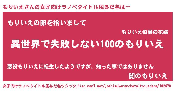 | 男性向けラノベタイトル風あだ名 | 『もりいえという概念が存在しない退屈な世界 』 |