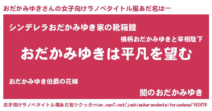 | 男性向けラノベタイトル風あだ名 | 『ダンジョンにおだかみゆきを求めるのは間違っているだろうか』 |