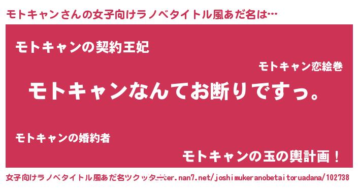 | 男性向けラノベタイトル風あだ名 | 『魔法科高校のモトキャン』 |