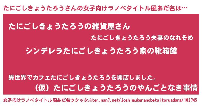 | 男性向けラノベタイトル風あだ名 | 『緋弾のタニゴシキョウタロウ』 |