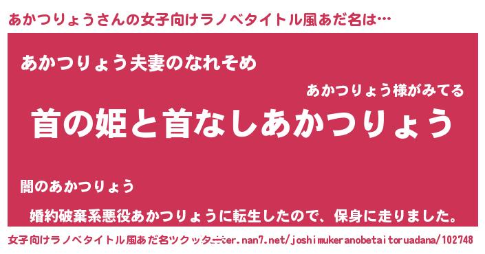 | 欧米人風あだ名 | 『アンジェラ・あかつりょう』 |