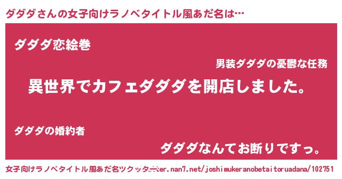 男性向けラノベタイトル風あだ名 | 『誰もが恐れるあのダダダが、ぼくの専属メイドになるようです。』 |