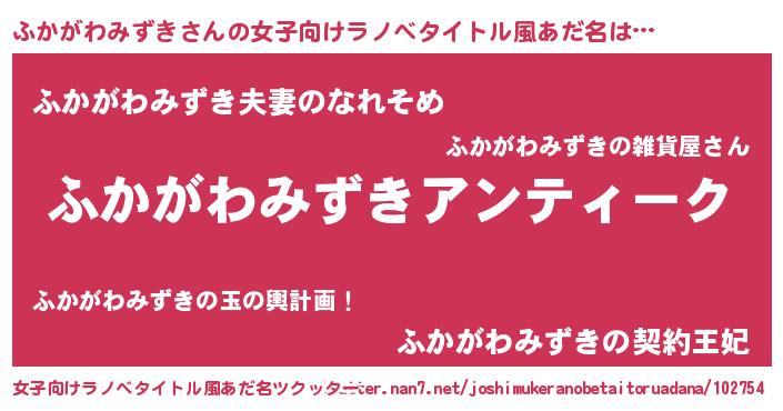 | 意味不明あだ名 | 『自称ふかがわみずき』 |