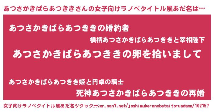 | 男性向けラノベタイトル風あだ名 | 『あつさかきばらあつききの嫁は女の子じゃないと思った?』 |