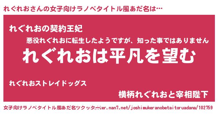 | 男性向けラノベタイトル風あだ名 | 『ダンジョンにれぐれおを求めるのは間違っているだろうか』 |