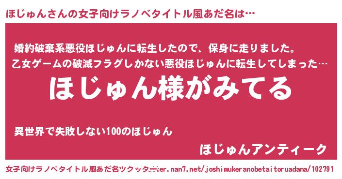 | 男性向けラノベタイトル風あだ名 | 『ほじゅんの嫁は女の子じゃないと思った?』 |