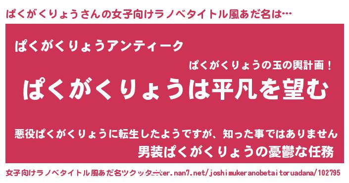 | 男性向けラノベタイトル風あだ名 | 『ダンジョンにぱくがくりょうを求めるのは間違っているだろうか』 |
