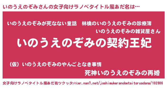 | 胡散臭い通販商品みたいなあだ名 | 『来世でも幸せになれる健康食品…その名も「いのうえのぞみ」』 |