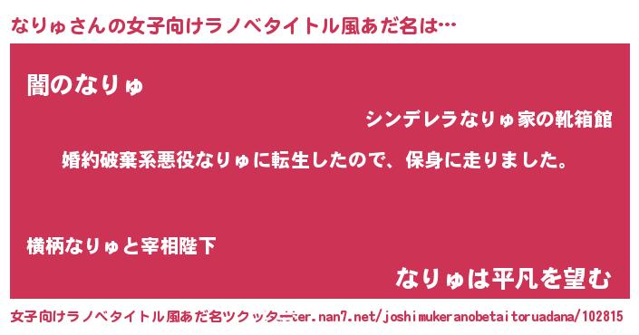 | 男性向けラノベタイトル風あだ名 | 『ナリュスレイヤー』『緋弾のナリュ』 |