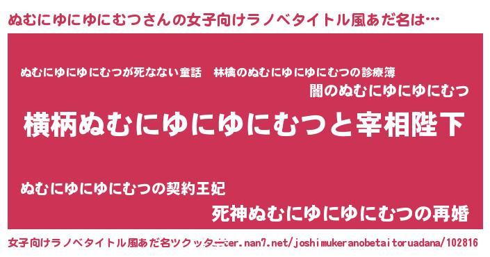 | 胡散臭い通販商品みたいなあだ名 | 『世界中を虜にした世界で10本だけ現存している希少なブランデー…その名も「ぬむにゆにゆにむつ」』 |