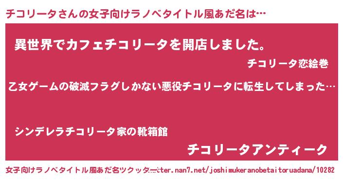 | 男性向けラノベタイトル風あだ名 | 『魔弾の王とチコリータ』 |