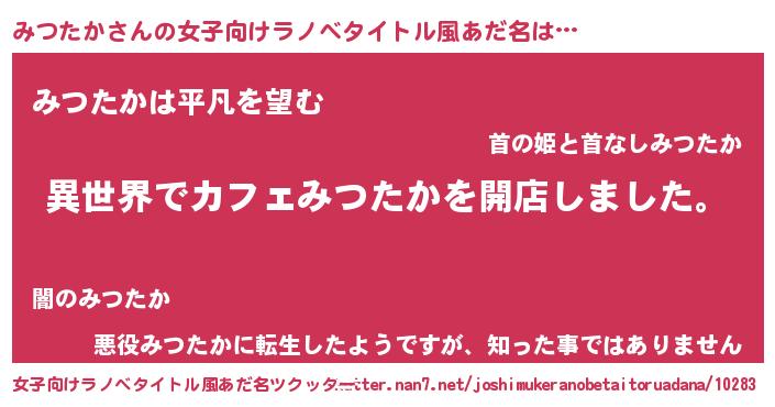| ヘコむあだ名 | 『みつたか(笑)』『みつお』 |