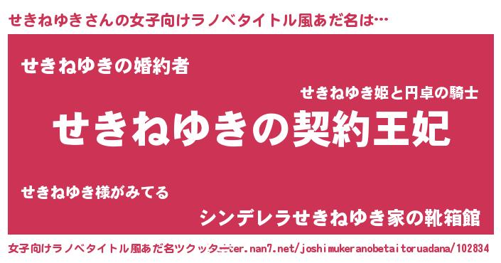 | 胡散臭い通販商品みたいなあだ名 | 『来世でも幸せになれる水素水…その名も「せきねゆき」』 |