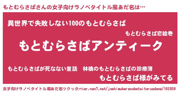 | 意味不明あだ名 | 『自称もとむらさば』 |