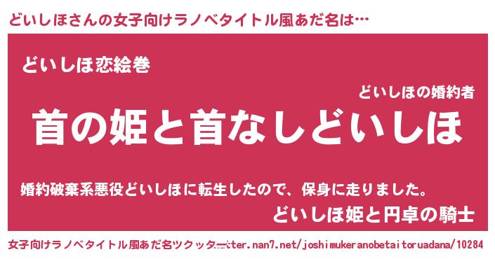 | 男性向けラノベタイトル風あだ名 | 『はたらくどいしほさま!』 |