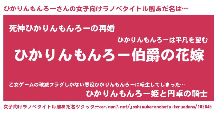 | ファンタジー風あだ名 | 『エターナルヒカリンモンローー』 |