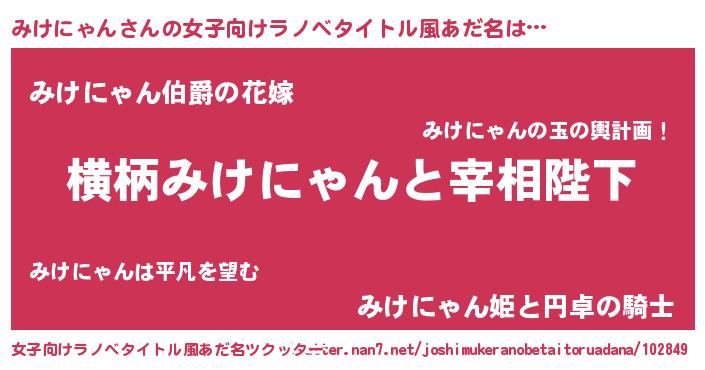 | 意味不明あだ名 | 『みけにゃんフォーエバー』 |