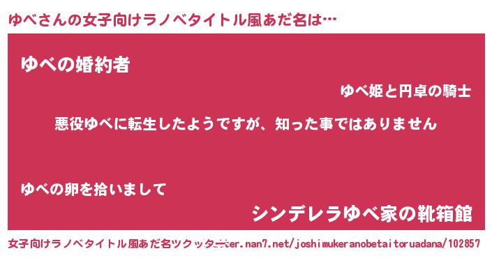 | 男性向けラノベタイトル風あだ名 | 『この素晴らしい世界にゆべを!』 |