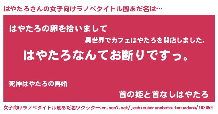 | 意味不明あだ名 | 『自称はやたろ』『永久保存はやたろ』 |