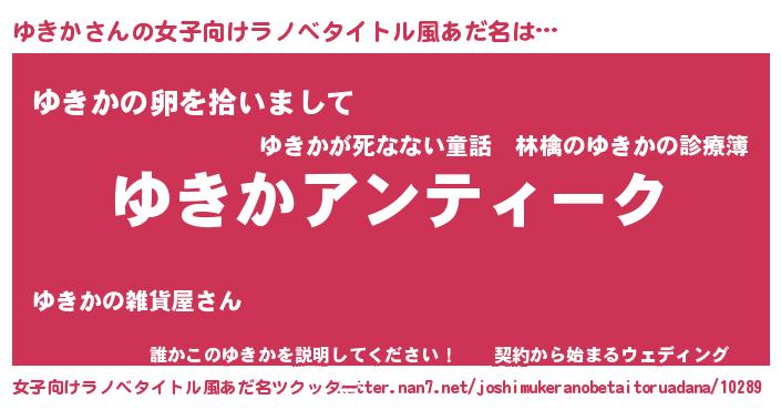 | 意味不明あだ名 | 『自称ゆきか』『とにかく怪しいゆきか』 |