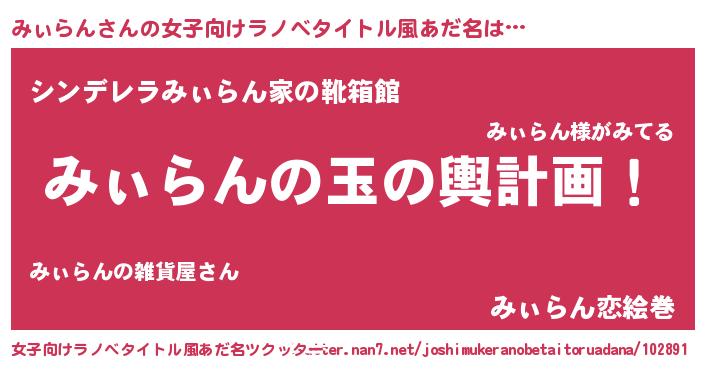 | 男性向けラノベタイトル風あだ名 | 『転生したらみぃらんだった件』 |