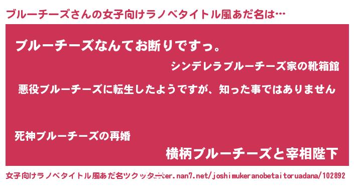 | 男性向けラノベタイトル風あだ名 | 『この素晴らしい世界にブルーチーズを!』 |