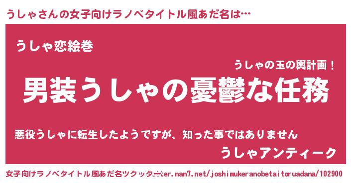 | 男性向けラノベタイトル風あだ名 | 『うちのうしゃが世界を掌握している!』 |