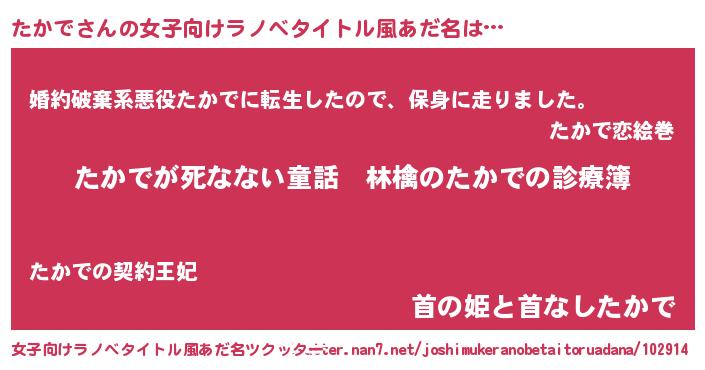 | 意味不明あだ名 | 『住所不定無職たかで(79歳)』 |