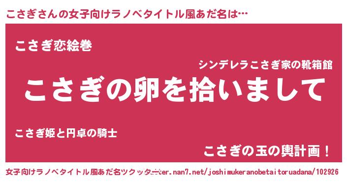 | 男性向けラノベタイトル風あだ名 | 『こさぎの嫁は女の子じゃないと思った?』 |