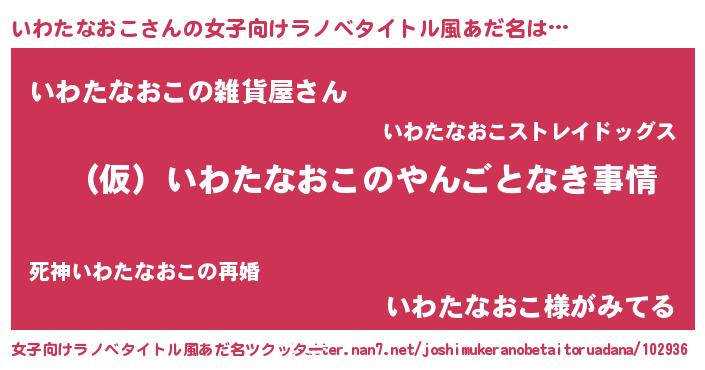 | 男性向けラノベタイトル風あだ名 | 『いわたなおこの憂鬱』 |