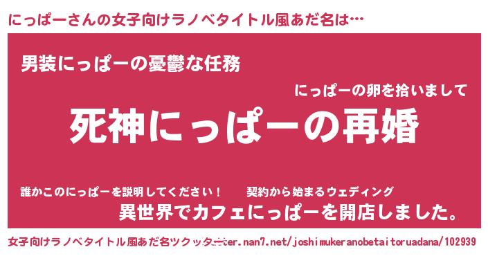| 男性向けラノベタイトル風あだ名 | 『ノーゲーム・ノーニッパー』 |