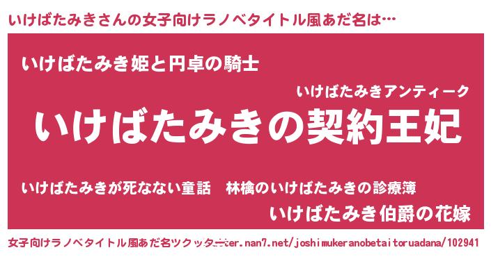 | 男性向けラノベタイトル風あだ名 | 『いけばたみきという概念が存在しない退屈な世界 』 |