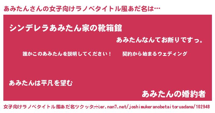 | 男性向けラノベタイトル風あだ名 | 『アミタンアートオンライン』 |