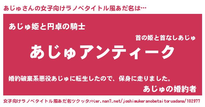 | 男性向けラノベタイトル風あだ名 | 『魔法科高校のあじゅ』 |