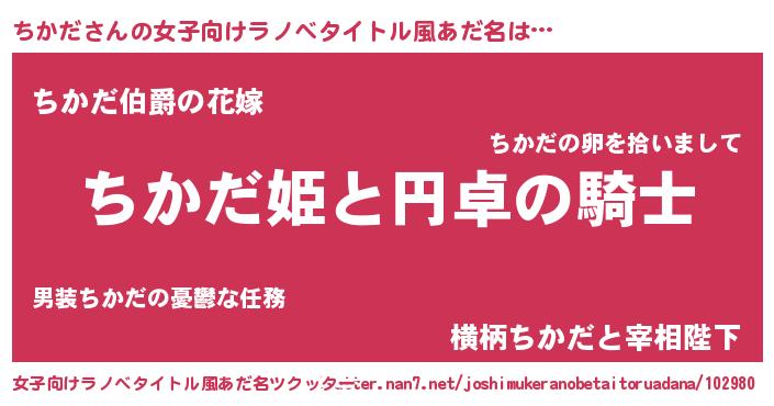 | 男性向けラノベタイトル風あだ名 | 『ちかだの憂鬱』 |