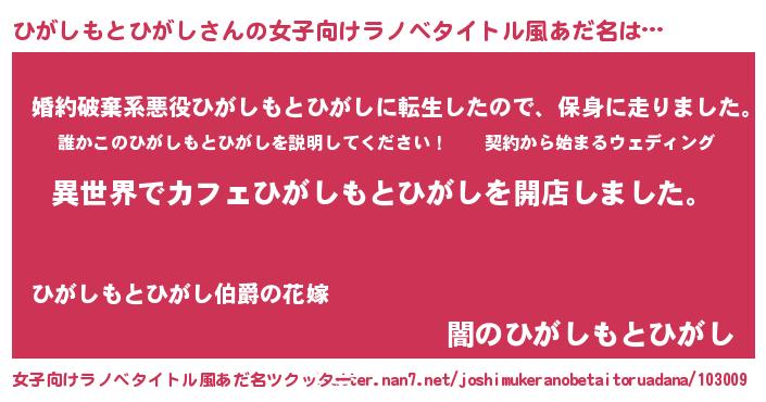 | 男性向けラノベタイトル風あだ名 | 『誰もが恐れるあのひがしもとひがしが、ぼくの専属メイドになるようです。』 |