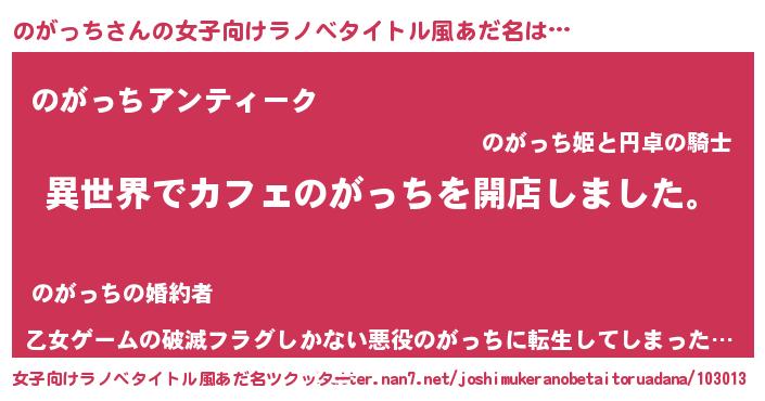 | 男性向けラノベタイトル風あだ名 | 『誰もが恐れるあののがっちが、ぼくの専属メイドになるようです。』 |