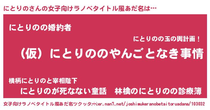 | ファンタジー風あだ名 | 『ニトフェル』『エターナルニトリノー』 |