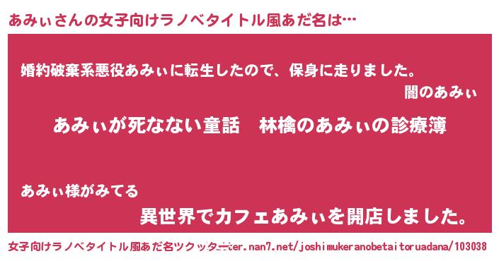 | 意味不明あだ名 | 『住所不定無職あみぃ(47歳)』『自称あみぃ』 |